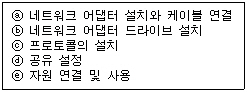 9. Windows98에서 등배 간 네트워크를 구축하는 과정으로 적절한 것은 ?